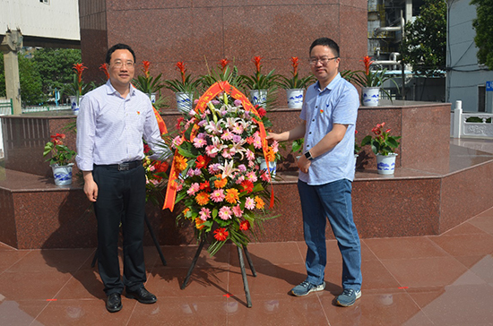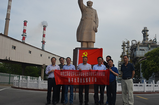 在位于大廠西廠門南京化學工業有限公司進門處的毛主席塑像廣場,聯合秘書處黨支部書記陳立來與南師大化科院黨委書記宋清濤共同向毛主席塑像敬獻了花籃,參加主題黨日活動的同志們莊重地向偉人三鞠躬,表達對一代偉人的無限敬意和深切懷念。此處毛主席塑像,由當年的南化職工籌建,高度為12.26米,于1969年12月26日毛主席76周歲生日當天落成,已經有50多年的歷史。