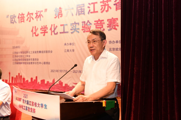 2021年7月17至19日,由江蘇省化學化工學會、江蘇省高校實驗室研究委員會、江蘇省高等學校實驗教學示范中心聯席會主辦,江南大學承辦的“歐倍爾杯”第六屆江蘇省大學生化學化工實驗競賽在江南大學成功舉行。此次競賽共有來自全省41所高校、69支隊伍的400余名師生參與。中國工程院院士、江南大學陳衛校長與江蘇省化學化工學會副理事長、南京師范大學沈健教授出席開幕式并致辭,江蘇省化學化工教學示范中心聯席會主席、南京大學張劍榮教授、江蘇省化學化工學會陳立來秘書長、江蘇省化學化工學會高校工作委員會常務副主任、江蘇大學朱衛華教授以及來自參賽高校的學院領導、全體參賽師生出席,開幕式由化學與材料工程學院院長東為富教授主持。