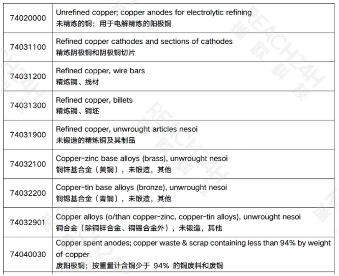 包括大量的金屬(銅、鈦、鈷、鐵等)、合金和相關產品。