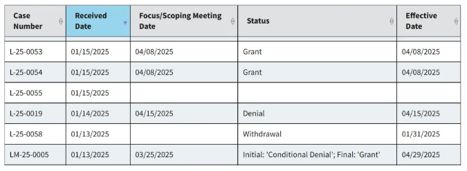 ● 2025年1月至5月23日期間,EPA共收到87個簡易申報(LVE/LoREX/TME),其中67個尚未收到最終審批決定,且自3月13日起提交的申報均未啟動審核;